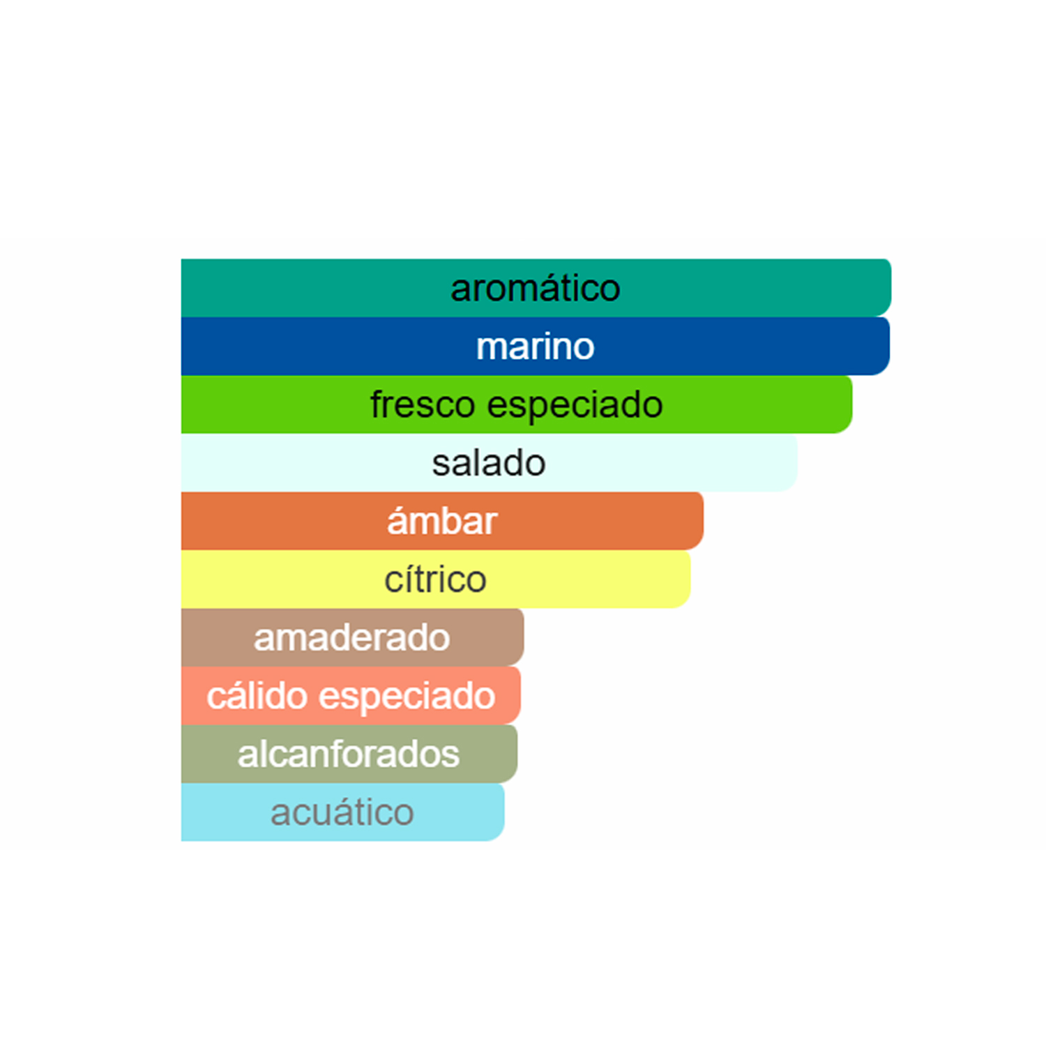 Las Notas de Salida son notas marinas, sal de mar y toronja (pomelo)
